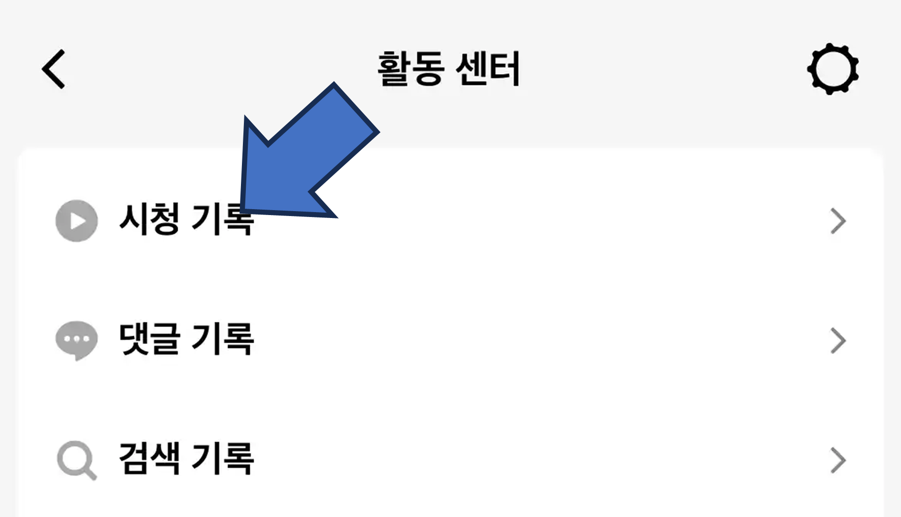 - 활동 센터 안의 여러 메뉴 중에서 '시청 기록'을 탭합니다.